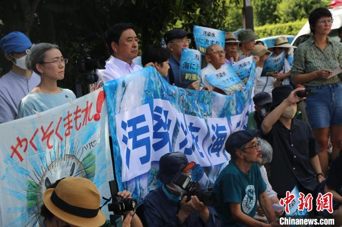 8月18日,日本民眾在東京首相官邸附近發(fā)起集會,要求政府遵守當(dāng)初作出的不擅自處置核污染水的承諾,撤回核污染水排海計劃。中新社記者 朱晨曦 攝