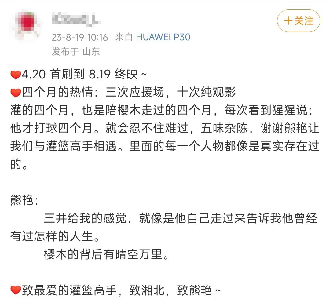 在《灌籃高手》電影終映日結(jié)束后,一位影迷留言道,“期待幾十年后重映,我們還是我們。”(完)