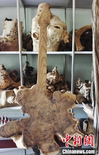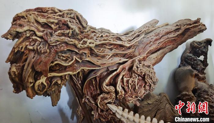 中新網(wǎng)新疆阿拉爾9月2日電(史玉江)一根腐朽的樹(shù)根,或許在別人眼里一文不值,可是在戴新看來(lái),朽木可雕琢,那些腐朽的樹(shù)根不僅能做成工藝品,還能增收致富?!霸诎⒗瓲栠@片土地上,各種樹(shù)根和朽木段,不管是沙漠中的,還是河道里的,只要我看上,都盡可能搬回來(lái)。”新疆生產(chǎn)建設(shè)兵團(tuán)第一師阿拉爾市“非遺”根雕傳承人戴新說(shuō),通過(guò)自己的雙手制作的根雕作品,讓他的生活樂(lè)趣無(wú)限。