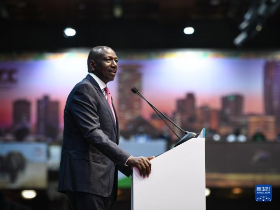 9月4日,肯尼亞總統(tǒng)魯托在內(nèi)羅畢舉行的首屆非洲氣候峰會(huì)開(kāi)幕式上致辭。新華社記者韓旭攝