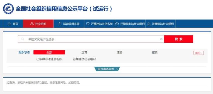 但中新財經(jīng)記者在全國社會組織信用信息公示平臺查詢發(fā)現(xiàn),中國城市雕塑建設研究院、中國文化經(jīng)濟促進會均未在民政部門登記。