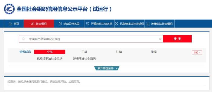 截圖自全國社會組織信用信息公示平臺(試運行)網(wǎng)站。