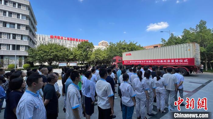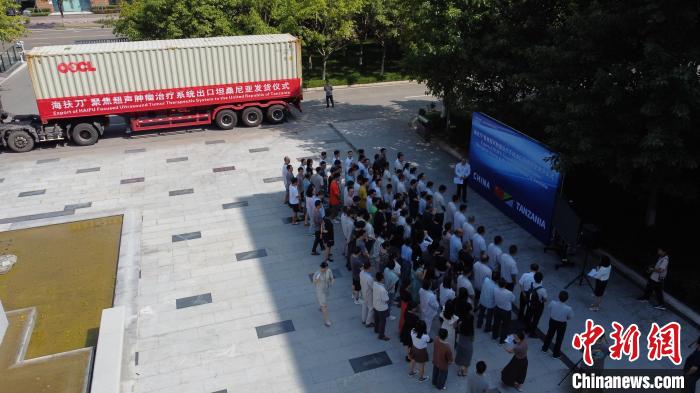 圖為“海扶刀”聚焦超聲腫瘤治療系統(tǒng)出口坦桑尼亞發(fā)貨儀式。肖江川 攝
