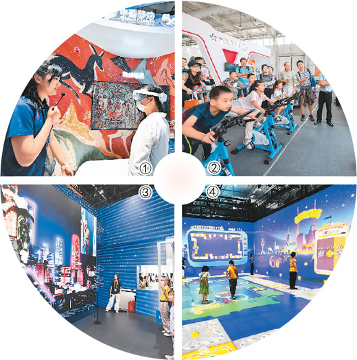 圖④:今年服貿(mào)會專題展聚焦行業(yè)熱點和發(fā)展趨勢,覆蓋AI和元宇宙技術、消費電子服務等內(nèi)容。圖為服貿(mào)會首鋼園展區(qū),小觀眾在體驗沉浸式游戲。
