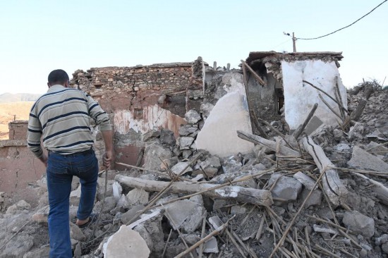 在震中山區(qū),不少村莊失去供電和通信,一些道路被巨石阻攔,影響救災(zāi)進度。在震中附近的艾米茲米茲村,倒塌的磚墻橫在狹窄的街道上,導致大型機械設(shè)備無法進入,救援人員被迫在廢墟里徒手挖人。該村僅有的一家雜貨鋪外排起長隊,災(zāi)民急需各種生活物資。