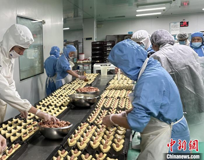 30年來(lái),羅莎蛋糕已從湖南走向全中國(guó),擁有300多家門(mén)店和2000多個(gè)員工。圖為員工在工廠做面包?!⒙?攝