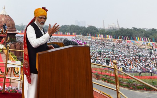 8月15日,印度總理莫迪在德里出席獨(dú)立日慶祝活動時(shí)發(fā)表講話。新華社發(fā)