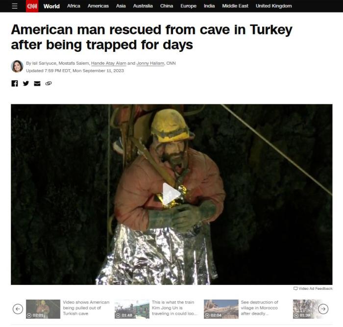 美國(guó)探險(xiǎn)家被困地下洞穴千米深處終獲救 190人參與救援