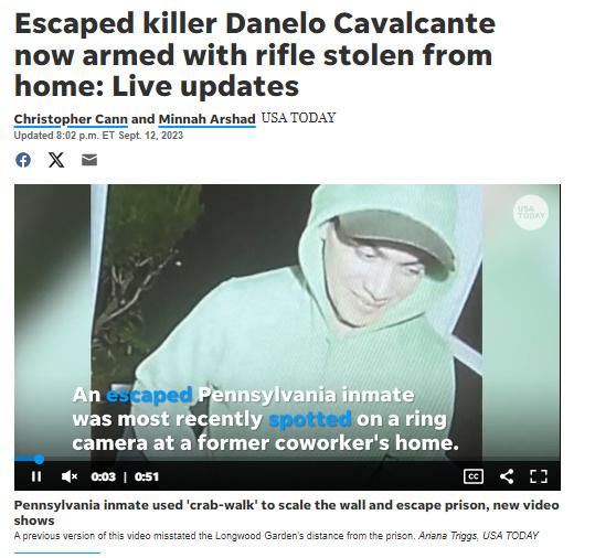 中新網(wǎng)9月13日電 綜合美媒報(bào)道,當(dāng)?shù)貢r(shí)間12日,美國賓夕法尼亞警方表示,在該州東南部發(fā)現(xiàn)了13天前越獄的殺人犯達(dá)內(nèi)洛·卡瓦爾坎特,他從一戶民宅獲取了一支步槍。目前警方已設(shè)立新的包圍圈逼近該逃犯。