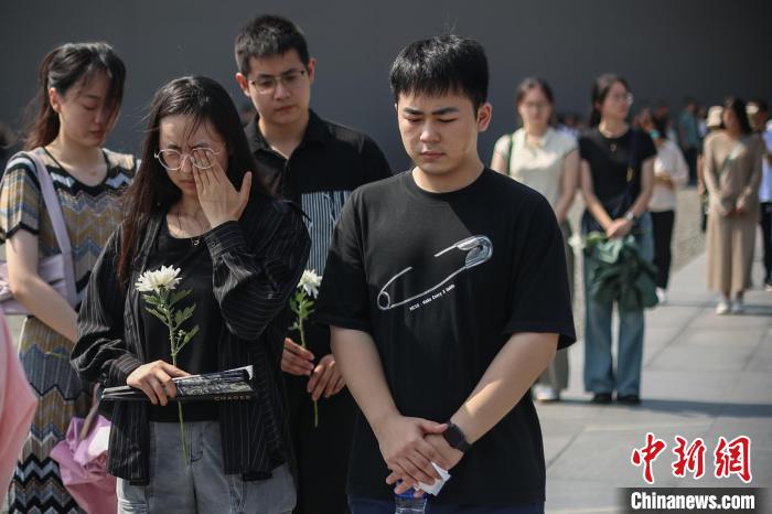 9月18日,在防空警報聲中,侵華日軍南京大屠殺遇難同胞紀念館中的參觀者駐足默哀。 泱波 攝