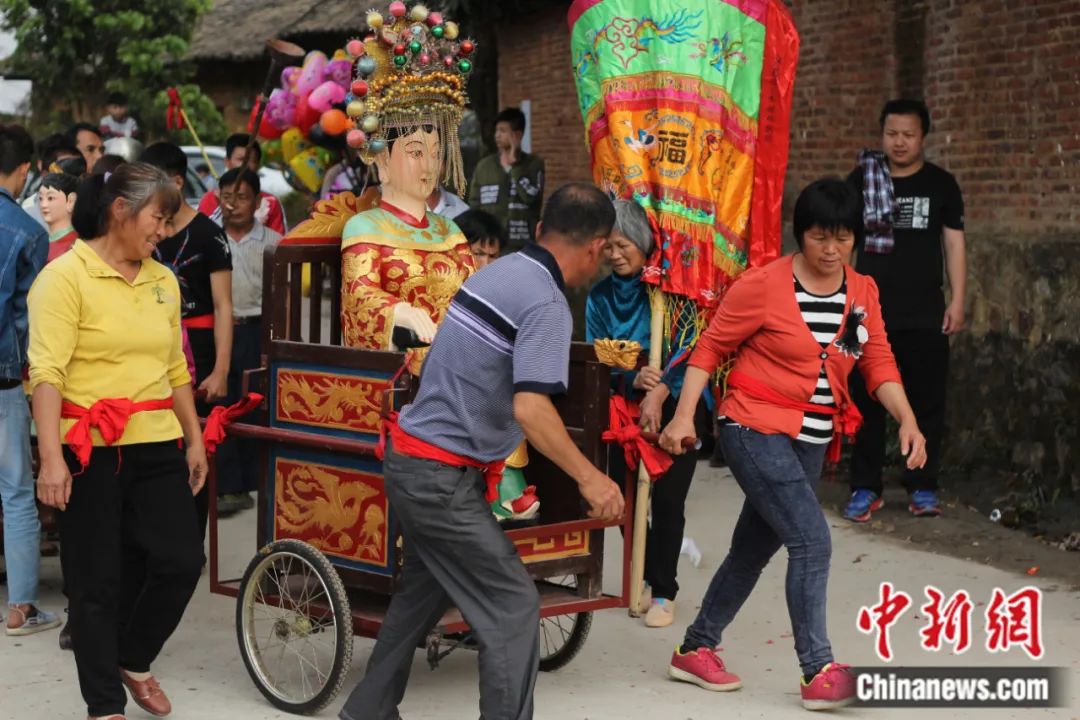冼夫人(神像)在信眾的簇擁下巡視本土,為這里的人們帶來心靈的慰藉。蘇崢 攝