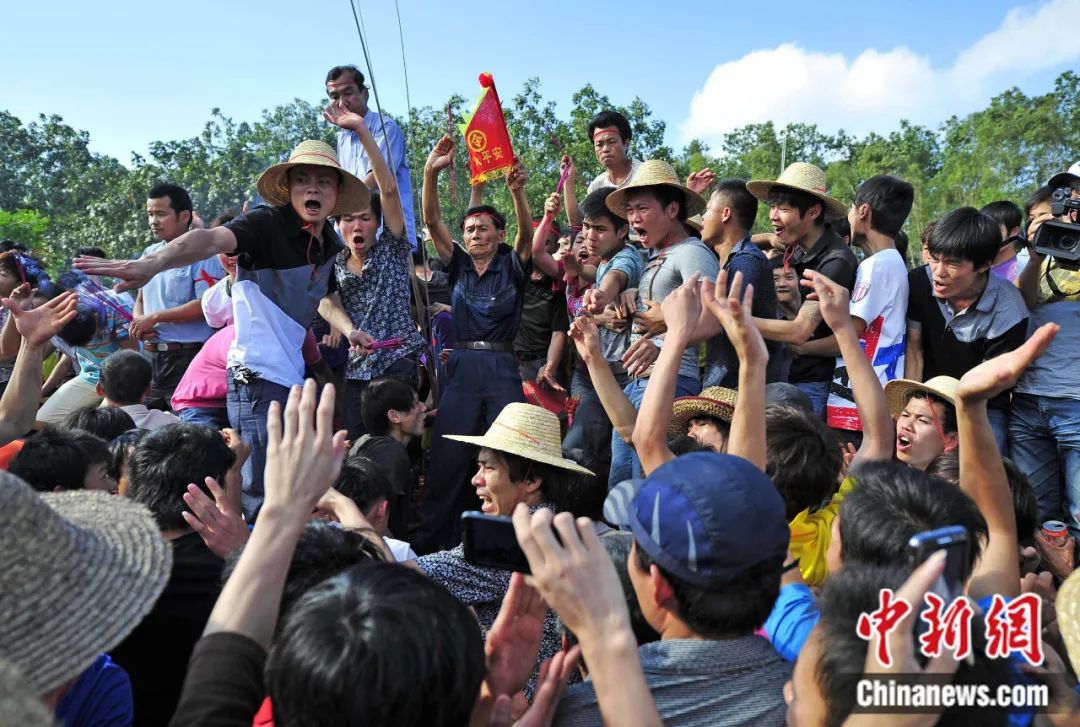 在海南鄉(xiāng)村,每年農(nóng)歷二、三月之間,村鎮(zhèn)將會舉行熱鬧的“鬧軍坡”活動。這是海南人的重大節(jié)日之一,起源一般都認為是以紀念冼夫人為主。駱云飛 攝