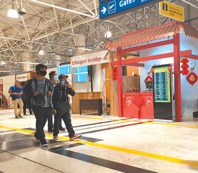 旅客經(jīng)過(guò)埃塞俄比亞博萊國(guó)際機(jī)場(chǎng)內(nèi)的中文服務(wù)臺(tái)。