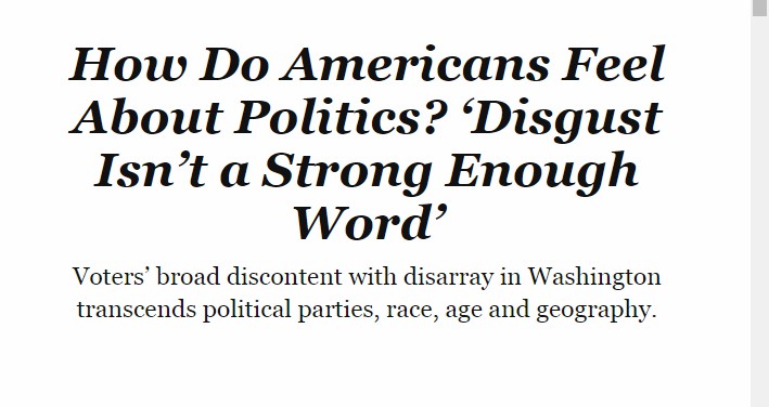 美國(guó)民眾批評(píng)政府功能失調(diào):政治領(lǐng)導(dǎo)人疏遠(yuǎn)我們,兩黨根本無(wú)法為國(guó)家謀福利!