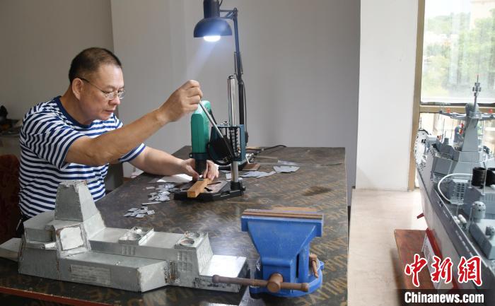 “這艘艦是用鍍鋅板按100∶1的比例制作的,花了我大概3年的業(yè)余時間,純手工制作?!?980年曾服役于東海艦隊,1983年退伍的漳州薌城籍海軍老兵潘雄告訴記者,他專注制作艦艇模型近40年,平均每兩年造一艘,目前已造出“遼寧號”航母、中華神盾艦等各類艦艇20艘模型,并有兩艘055型驅(qū)逐艦模型正在制作中。