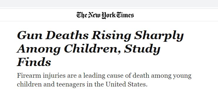 2021年,美國(guó)約有2590名18歲以下的兒童和青少年死于槍支,高于2011年的1311人。在其他經(jīng)濟(jì)發(fā)展程度較高的國(guó)家,槍支甚至不在導(dǎo)致兒童死亡的三大原因之列。