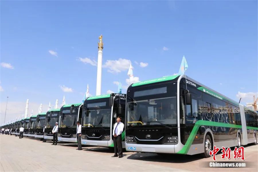 2023年7月4日,來自中國的宇通客車批量交付儀式在哈薩克斯坦首都阿斯塔納獨(dú)立廣場舉行。張碩 攝