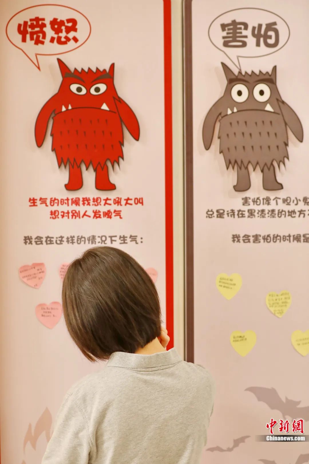 2023年5月14日,在浙江省嘉興市兒童青少年心理健康服務總站,學生在“情緒墻”上表達心聲。金鵬 攝