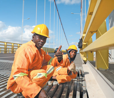 據(jù)介紹,馬普托大橋項目在建設(shè)過程中踐行屬地化經(jīng)營理念,建設(shè)最高峰期雇傭當(dāng)?shù)貑T工超過3000人,焊工、車工、鋼筋工、機械操作手等一大批專業(yè)技術(shù)人員通過大橋項目提升了職業(yè)技能?!霸诖髽蝽椖可蠈W(xué)到的一技之長幫我找到了新的工作。”莫桑比克青年菲爾德普卡談及在馬普托大橋項目工作的收獲,臉上洋溢著幸福的笑容。