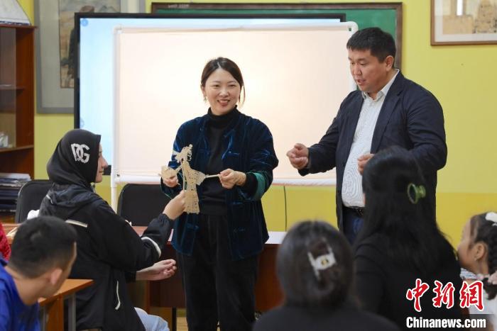 北師大未來(lái)設(shè)計(jì)學(xué)院的老師在吉爾吉斯斯坦的大學(xué)校園里開(kāi)設(shè)皮影藝術(shù)工作坊。北師大未來(lái)設(shè)計(jì)學(xué)院供圖