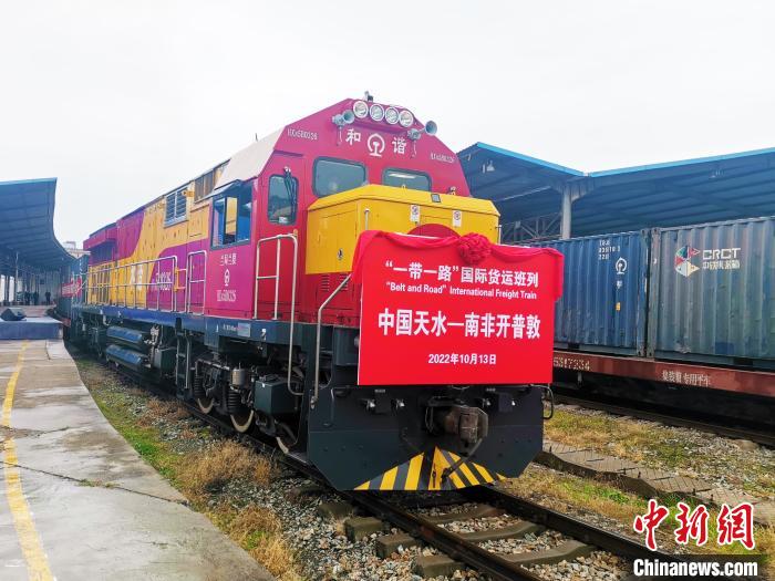 2022年,“中國(guó)天水—南非開普敦”國(guó)際班列從蘭州駛出?!±钪窘?攝