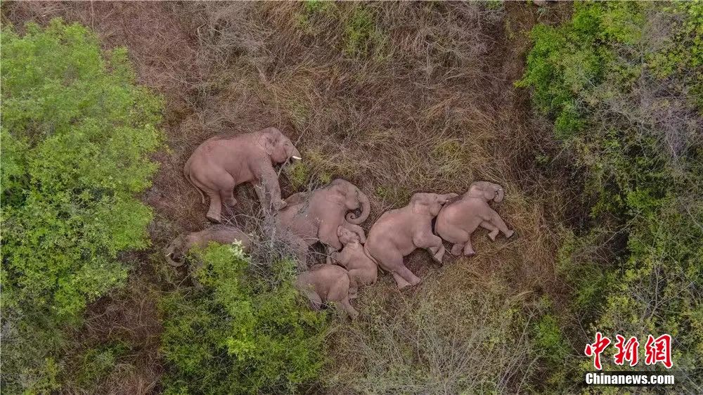 圖為北上南歸的亞洲象群。云南省森林消防總隊(duì) 供圖