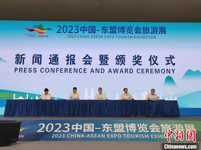 10月15日,2023中國—東盟博覽會(huì)旅游展新聞通報(bào)會(huì)暨頒獎(jiǎng)儀式舉行。唐蔚晴 攝