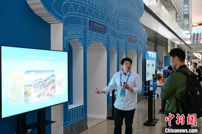 在人工智能繪畫(huà)和動(dòng)畫(huà)體驗(yàn)區(qū),體驗(yàn)者只需在現(xiàn)場(chǎng)觸控屏前隨意勾畫(huà)線條輪廓,智能引擎將據(jù)此生成意境超拔的山水畫(huà)卷,讓觀眾體驗(yàn)前沿科技與傳統(tǒng)繪畫(huà)交融之趣。體驗(yàn)區(qū)內(nèi)的智能引擎還可建構(gòu)虛擬人物,生成動(dòng)畫(huà)短片暢游打卡勝地,讓體驗(yàn)者置身于古都風(fēng)貌和現(xiàn)代生活。