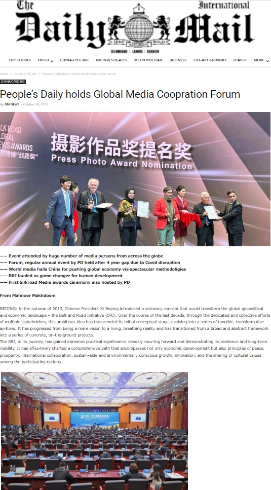 巴基斯坦《每日郵報(bào)》網(wǎng)站報(bào)道2023“一帶一路”媒體合作論壇及首屆國際傳播“絲路獎(jiǎng)”頒獎(jiǎng)活動(dòng)