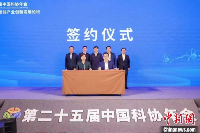 第二十五屆中國科協(xié)年會通用人工智能產(chǎn)業(yè)創(chuàng)新發(fā)展論壇上,中國自動化學會與科大訊飛簽署戰(zhàn)略合作協(xié)議。中國科協(xié) 供圖