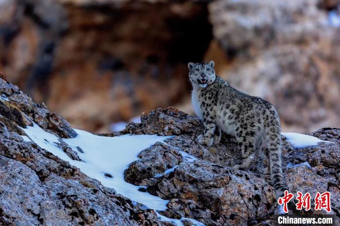 資料圖為2017年,攝影師在祁連山國家公園青海片區(qū)拍攝到的雪豹。(鮑永清 攝)