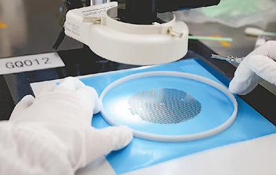 福建省福州高新技術(shù)產(chǎn)業(yè)開(kāi)發(fā)區(qū)一芯片生產(chǎn)車(chē)間,工作人員在檢測(cè)芯片產(chǎn)品。