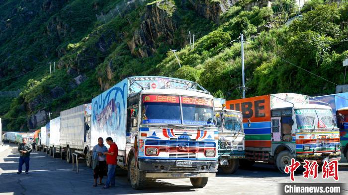 2018年7月26日,西藏自治區(qū)日喀則吉隆口岸,尼泊爾車輛排隊(duì)等待通關(guān)。(資料圖) 中新社記者 江飛波 攝