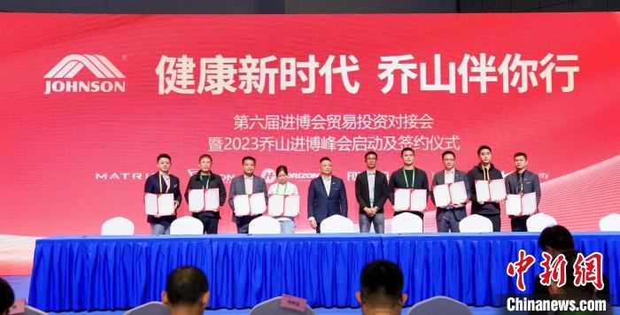 11月7日,臺(tái)資企業(yè)喬山健康科技(上海)有限公司在第六屆進(jìn)博會(huì)上簽約。(喬山集團(tuán)供圖)