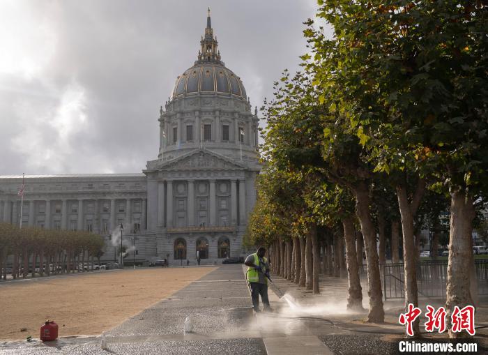 近期,舊金山開放了額外的庇護所床位,以吸引人們離開街道。另外,該市正在對地面、垃圾桶、廁所等公共設施進行清理和維護。記者6日在舊金山市政廳前的市政中心廣場上看到,幾名工作人員用高壓水槍和化學試劑清潔地面。一名現(xiàn)場負責人說,其供職的公司兩星期之前接到了該項任務。