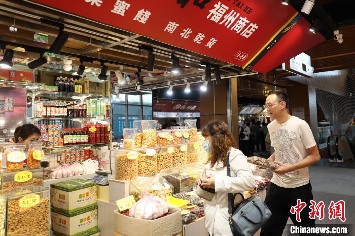 福泰和福州商店老板陳由申忙著向顧客介紹香菇、干貝等南北干貨。他對(duì)記者表示,爺爺來(lái)自福州,早年賣(mài)福州魚(yú)丸、燕皮、面線等家鄉(xiāng)食品;自己接班以來(lái),增加了堅(jiān)果等更多種類(lèi)商品,期待生意蒸蒸日上。