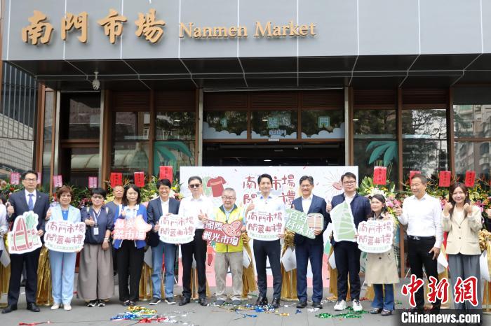 11月16日,經(jīng)過(guò)四年改建的臺(tái)北南門(mén)市場(chǎng)正式重新開(kāi)業(yè),圖為出席開(kāi)幕式的嘉賓剪彩后合影。 中新社記者 陳小愿 攝