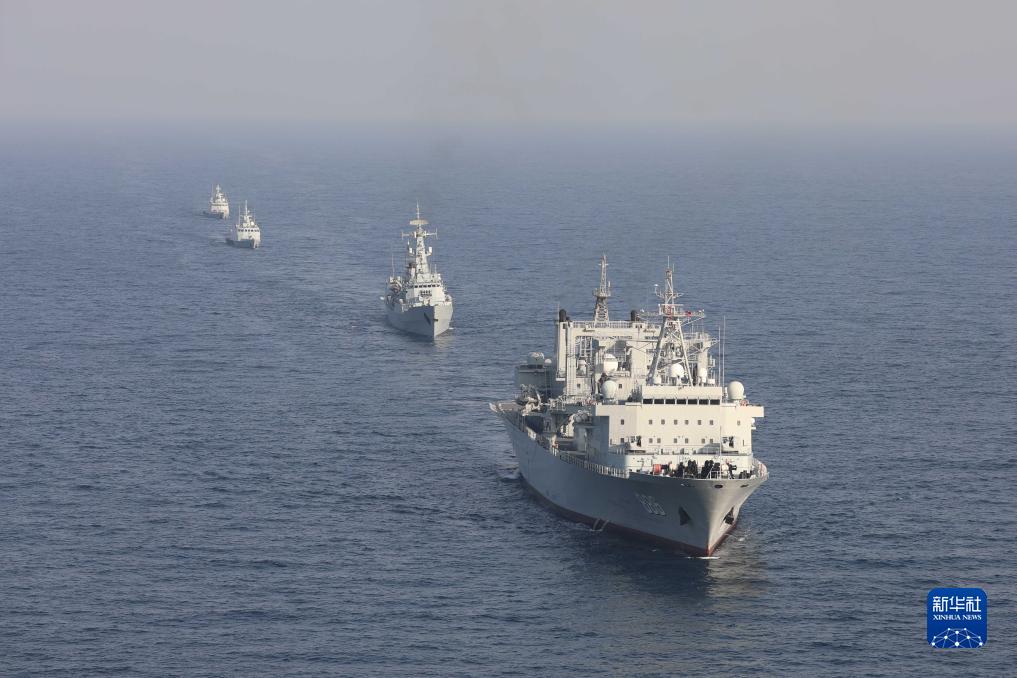中巴“海洋衛(wèi)士-3”海上聯(lián)合演習(xí)在阿拉伯海北部海空域舉行,雙方艦艇組織編隊(duì)運(yùn)動(11月14日攝)。新華社發(fā)(姜霞攝)