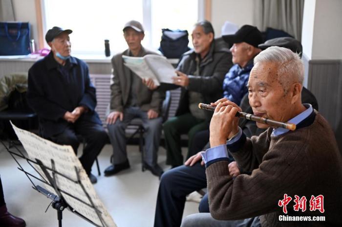 圖為11月27日,甘肅省蘭州市七里河區(qū)建蘭路街道吳家園社區(qū)養(yǎng)老服務(wù)中心內(nèi),老人們在社區(qū)食堂就餐后進行合唱練習。 中新社記者 九美旦增 攝