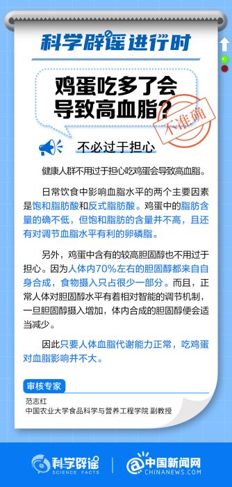 中新網(wǎng)11月27日電 只要人體血脂代謝能力正常,吃雞蛋對血脂影響并不大。日常飲食中影響血脂水平的兩個(gè)主要因素是飽和脂肪酸和反式脂肪酸。雞蛋中的脂肪含量的確不低,但飽和脂肪的含量并不高,且還有對調(diào)節(jié)血脂水平有利的卵磷脂。(來源:@科學(xué)辟謠 @中國新聞網(wǎng) )