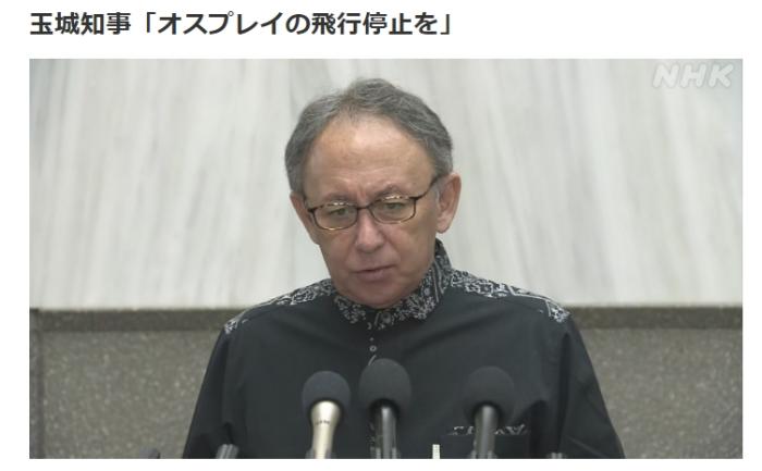 玉城表示,“正因沒有正視‘魚鷹’的危險性,才釀成了如此嚴(yán)重的事故,實(shí)在令人遺憾”,他強(qiáng)調(diào)目前非常擔(dān)心“魚鷹”在民用區(qū)域和民用機(jī)場起降成為常態(tài),呼吁駐日美軍立即停飛“魚鷹”,直至安全問題徹底解決。