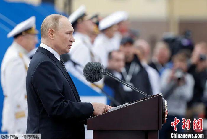 資料圖:2022年7月31日,俄羅斯總統(tǒng)普京在俄海軍節(jié)閱兵式上發(fā)表講話。