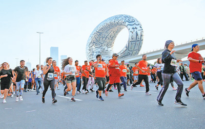 人們踴躍參加“迪拜跑”活動(dòng)。