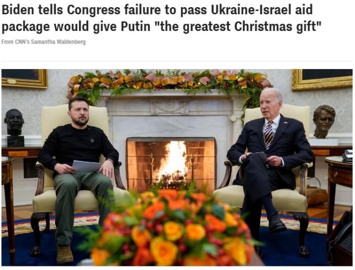 另據(jù)美國有線電視新聞網(wǎng)(CNN)報道,當(dāng)天下午,澤連斯基前往白宮會見拜登,雙方在會談中都強調(diào)了美國對烏援助的緊迫性。拜登稱,如果美國會未能通過對烏援助計劃,這將是“送給俄總統(tǒng)普京最好的圣誕禮物”。