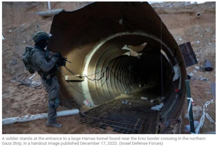 以色列國防軍表示,這條地道長約4公里,部分地區(qū)深約50米,寬度足以讓車輛通過,其中一個豎井距埃雷茲過境點僅400米。