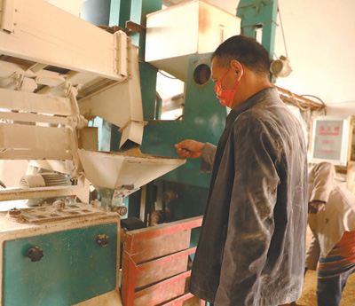 7月25日,在莫桑比克馬普托省博阿內(nèi)地區(qū),技術員在中莫農(nóng)業(yè)技術示范中心加工農(nóng)作物。