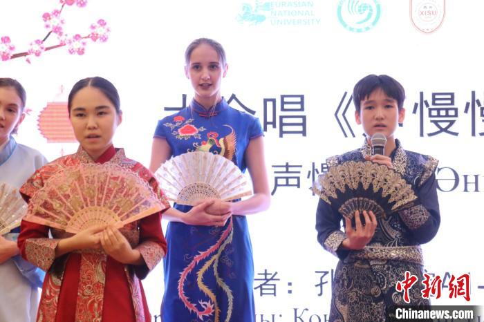 12月22日晚,哈薩克斯坦阿斯塔納,“漢語風(fēng)采,中哈同歡”2024年阿斯塔納中文盛典暨元旦聯(lián)歡慶?;顒?dòng)舉行。圖為身著中國傳統(tǒng)服飾的哈學(xué)生為觀眾帶來精彩表演?! ≈行戮W(wǎng)記者 張碩 攝
