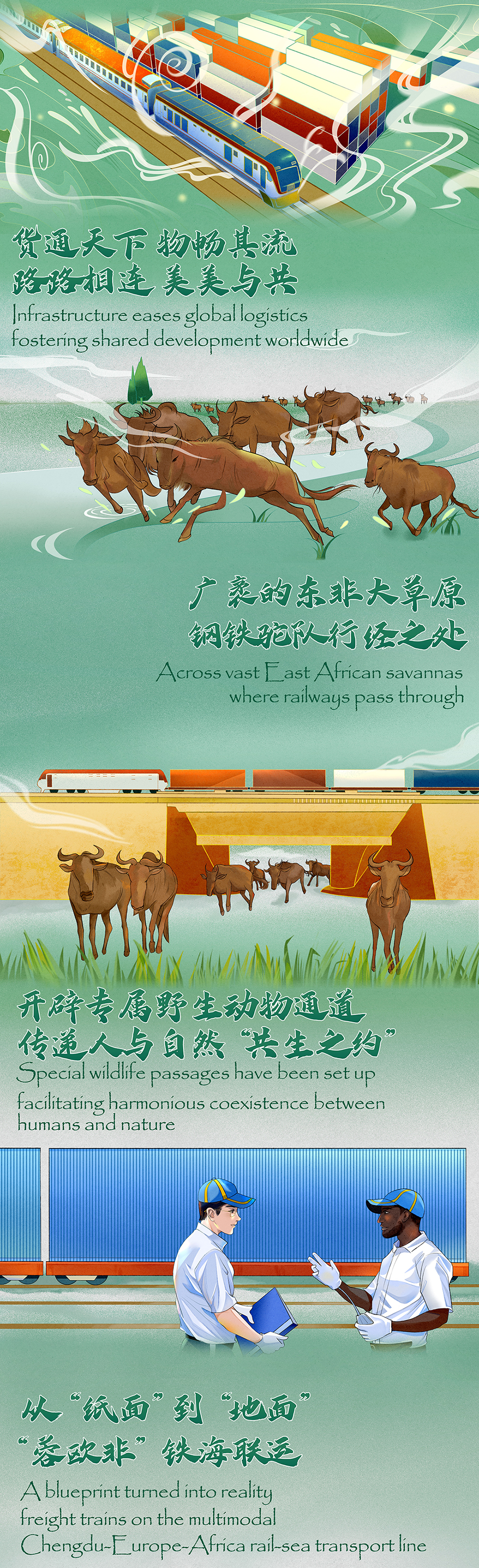 中新網(wǎng)12月29日電 從蒙內(nèi)鐵路到中歐班列:“一帶一路”倡議跨山越海,物暢其流,共建國家共襄盛舉,共享繁榮,奏響跨大陸的動人交響樂。