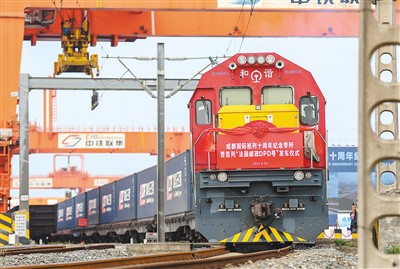 “開行量持續(xù)增加、運輸產(chǎn)品更加多元、線路不斷豐富優(yōu)化……從中歐班列開行的變化中,可以明顯看出共建‘一帶一路’倡議提出十年來的蓬勃發(fā)展。”成都國際鐵路港經(jīng)開區(qū)管委會主任雷庭介紹。