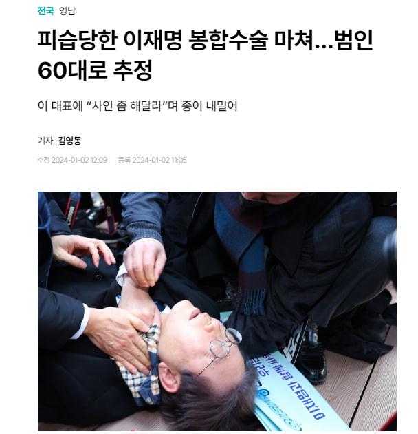據(jù)報道,李在明2日在釜山出席活動時遇襲,頸部左側(cè)有約1厘米裂傷,在現(xiàn)場接受緊急止血,隨后送醫(yī)治療。當?shù)貢r間11點14分左右,李在明接受了縫合手術(shù)。